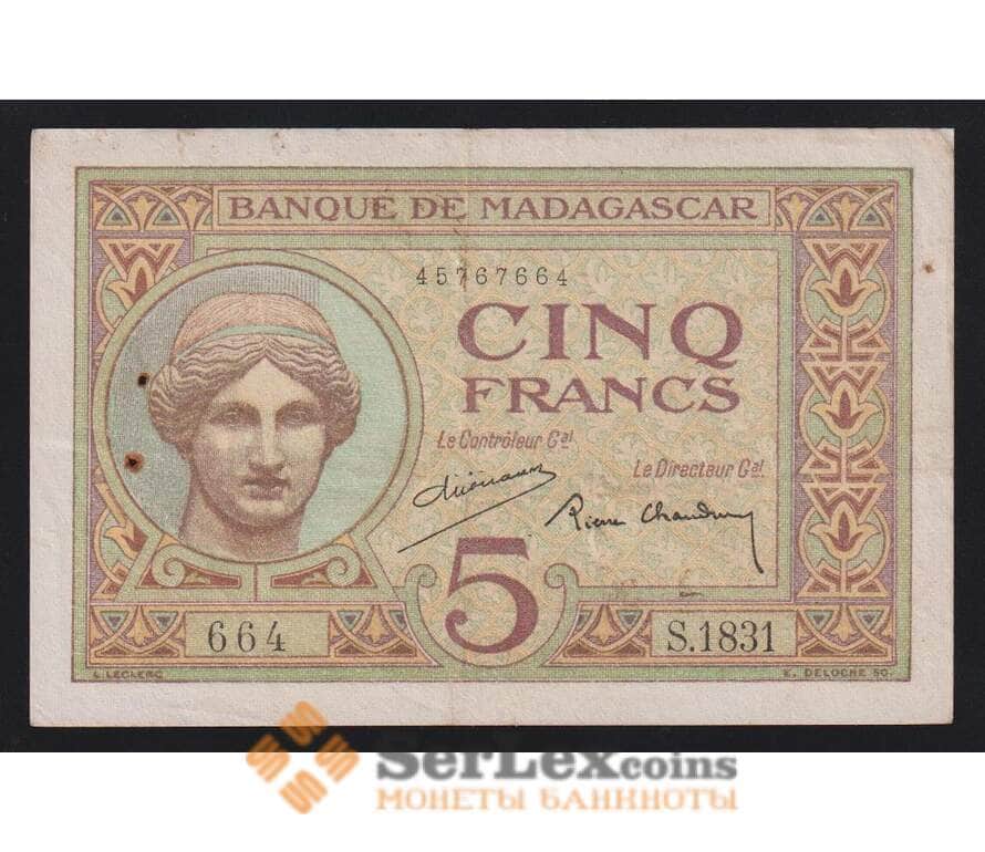 Мадагаскар 5 франков ND 1937 Р37b VF-XF арт. 55913