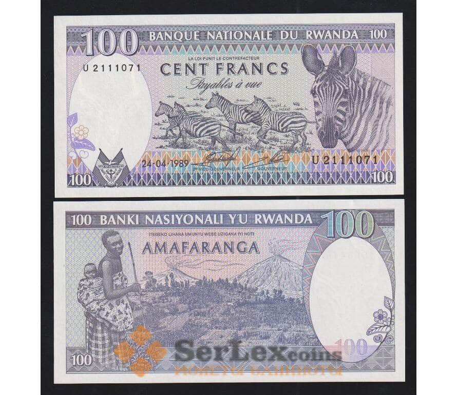 Руанда 100 франков 1989 Р19а UNC арт. 55397