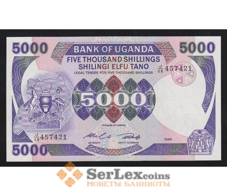 Уганда 5000 шиллингов 1986 Р24b UNC арт. 54705