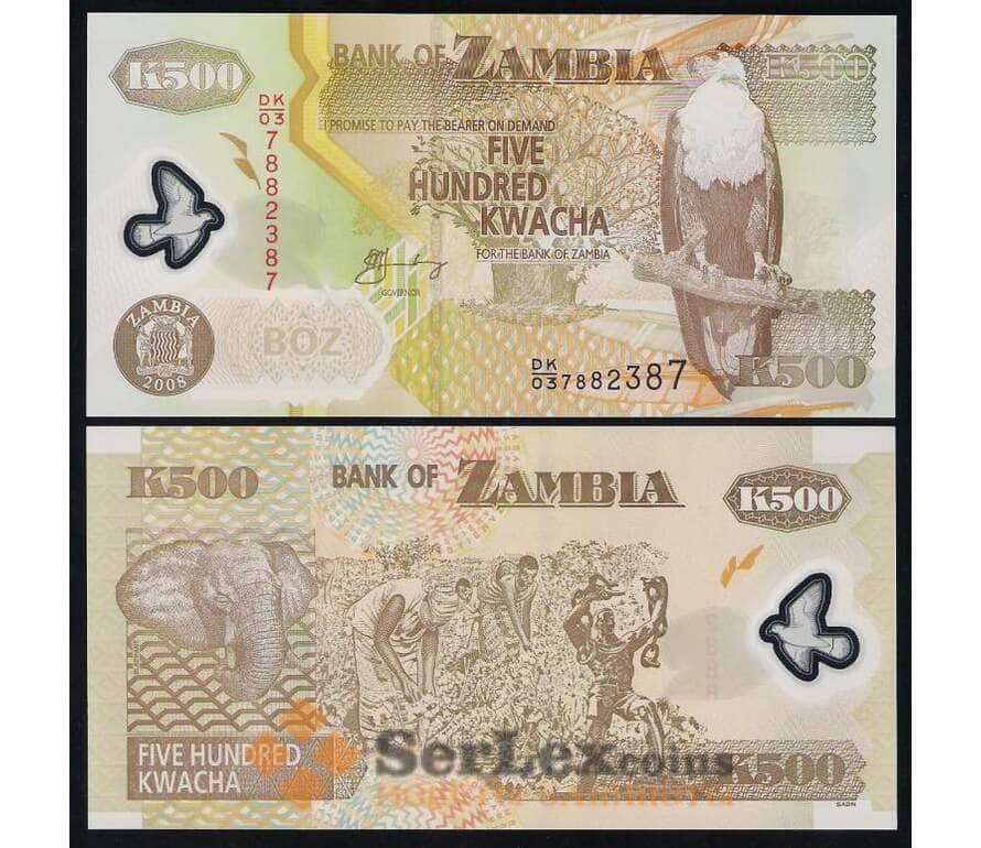 Банкнота Замбия 500 Квача 2008 UNC пластик арт. В00406