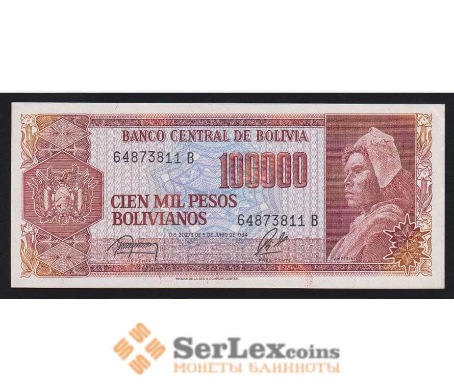 Боливия 100000 боливиано 1984 Р171а(2) aUNC арт. 55856