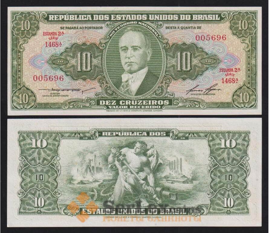 Бразилия 10 крузейро ND 1953-1960 P159d UNC арт. 54472