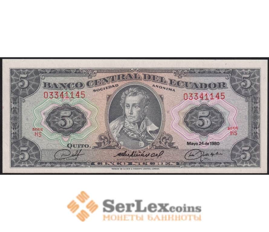 Эквадор банкнота 5 сукре 1980 Р113с UNC арт. 43631