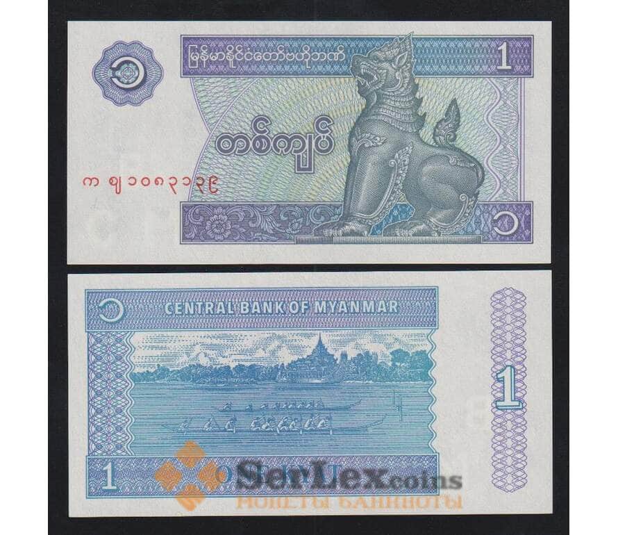 Банкнота Мьянма 1 кьят 1996 Р69 UNC арт. В00957