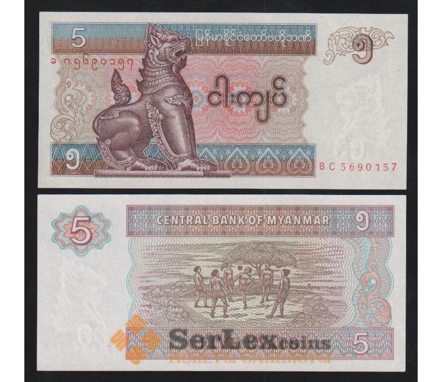Мьянма 5 кьят 1995 Р70b(1) UNC четкий водяной знак арт. 54609