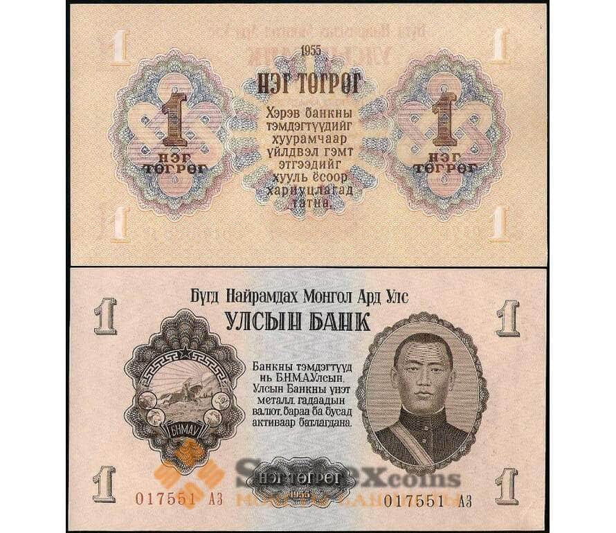 Банкнота Монголия 1 тугрик 1955 Р28 UNC арт. 29150