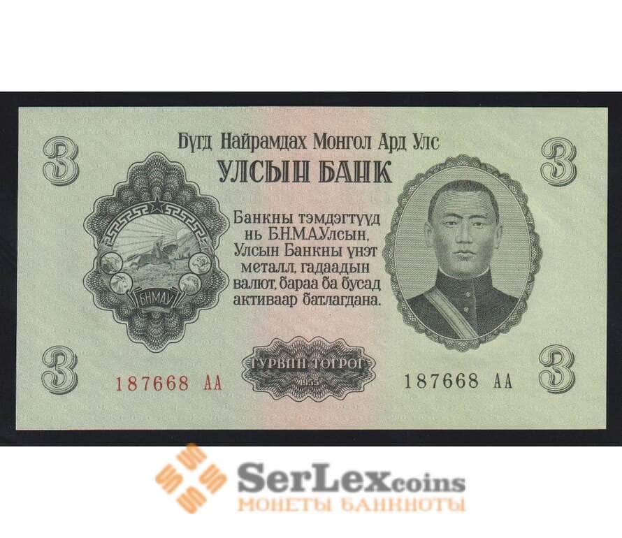 Монголия 3 тугрика 1955 Р29 UNC серия АА арт. 55432