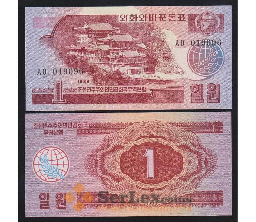Северная Корея 1 вона 1988 Р35 UNC валютный сертификат для гостей из соцстран арт. 54633