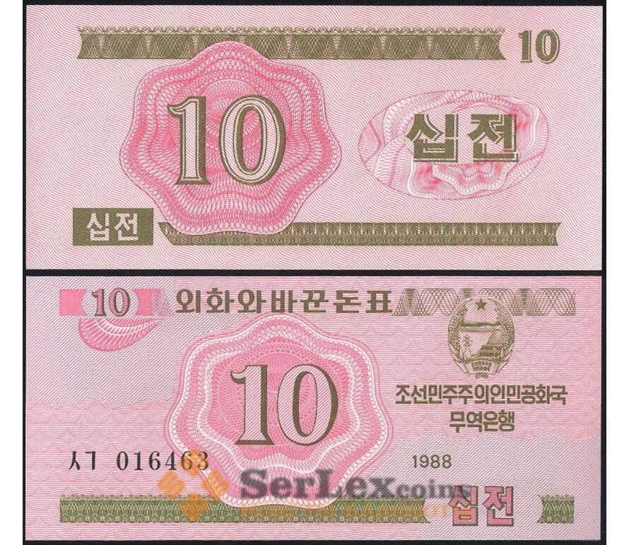 Северная Корея 10 чон 1988 Р33 UNC валютный сертификат для гостей из соцстран