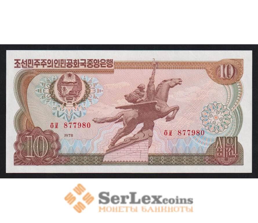 Северная Корея 10 вон 1978 Р20с UNC красная печать арт. 54647