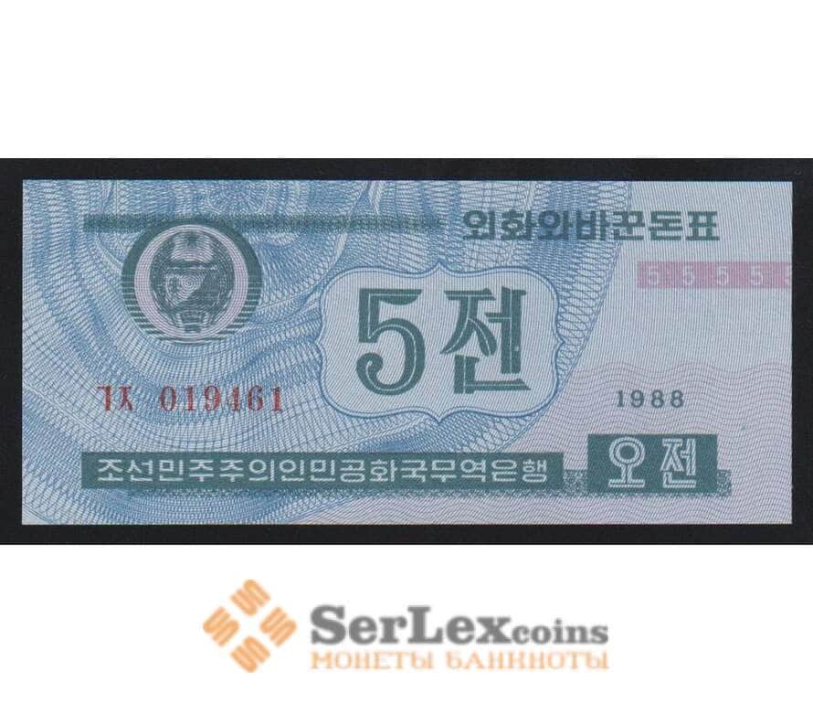 Северная Корея 5 чон 1988 Р24.1 UNC валютный сертификат для гостей из капстран арт. 54635