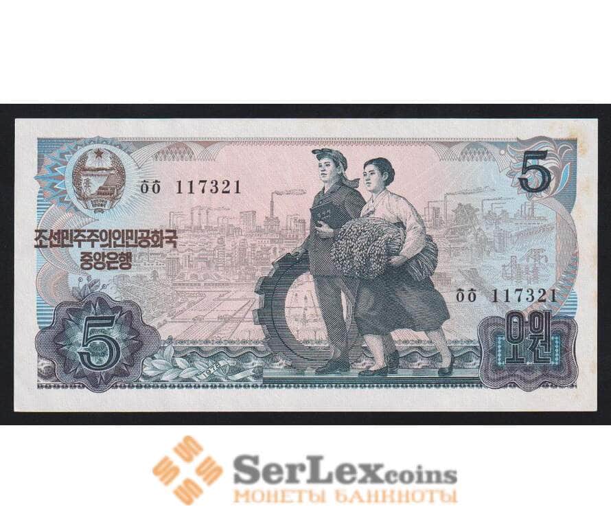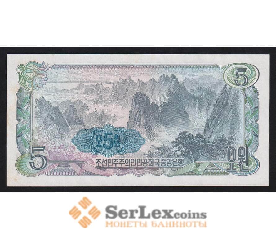 Северная Корея 5 вон 1978 Р19е aUNC синяя надпечатка арт. 54644