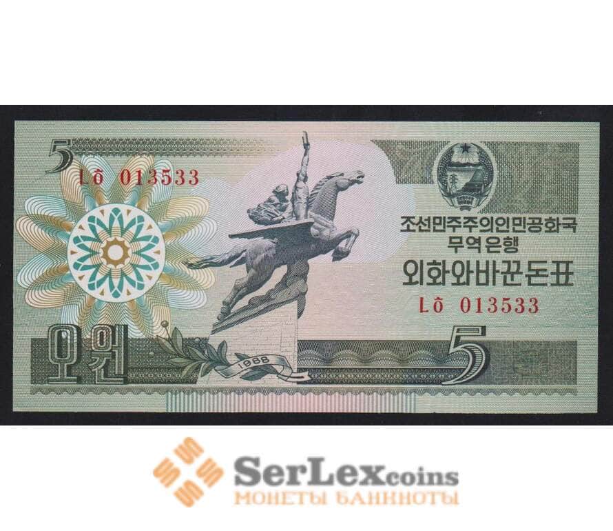 Северная Корея 5 вон 1988 Р28.1 UNC валютный сертификат для гостей из капстран арт. 54638