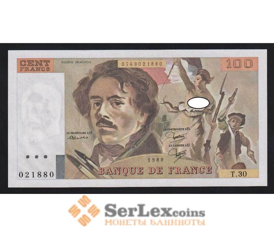 Франция 100 франков 1980 Р154b aUNC брак бумаги арт. 54707