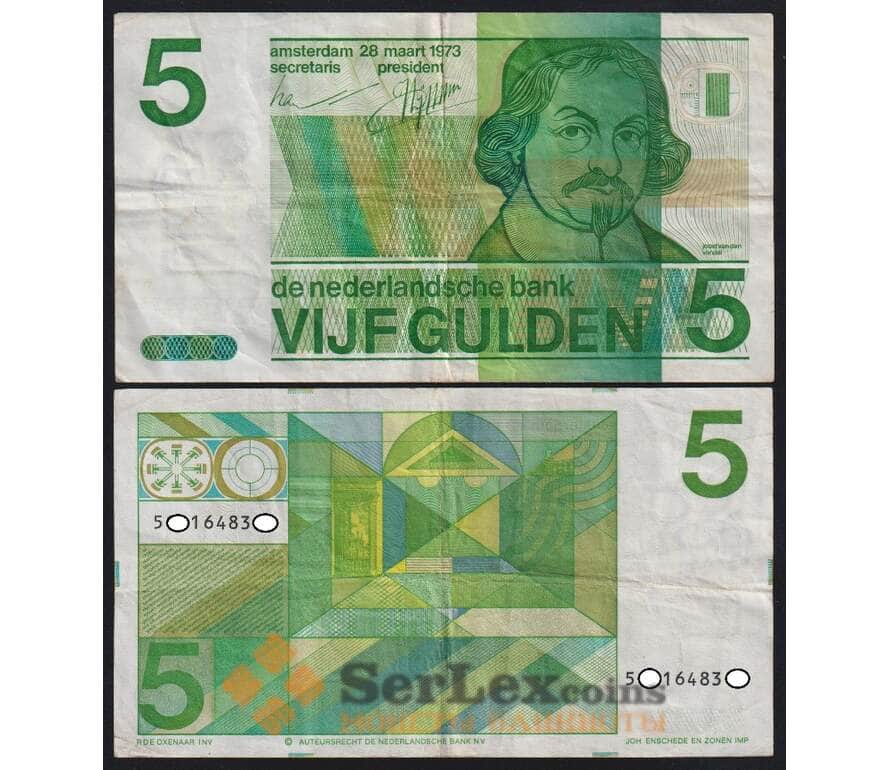Нидерланды банкнота 5 гульденов 1973 Р95 VF арт. 47113