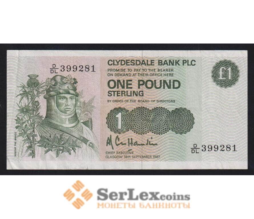 Шотландия 1 фунт 1987 Р211d XF CLYDESDALE Bank арт. 55365