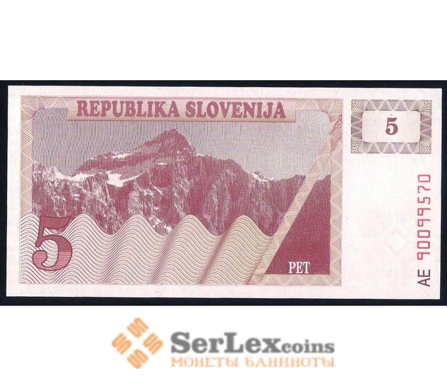 Банкнота Словения 5 толаров 1990 Р3 UNC арт. 39688