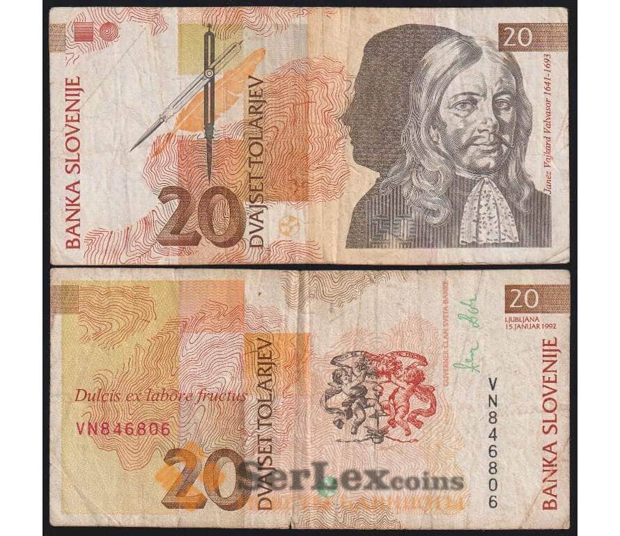 Словения банкнота 20 толаров 1992 Р12 F арт. 48319