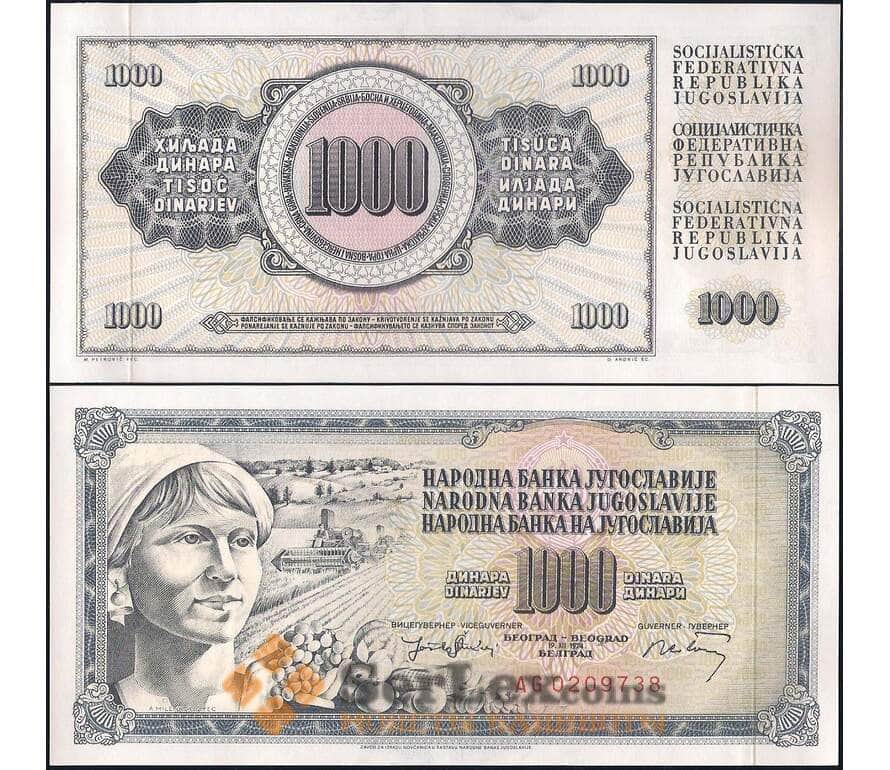 Банкнота Югославия 1000 Динар 1974 Р86 UNC арт. 22055