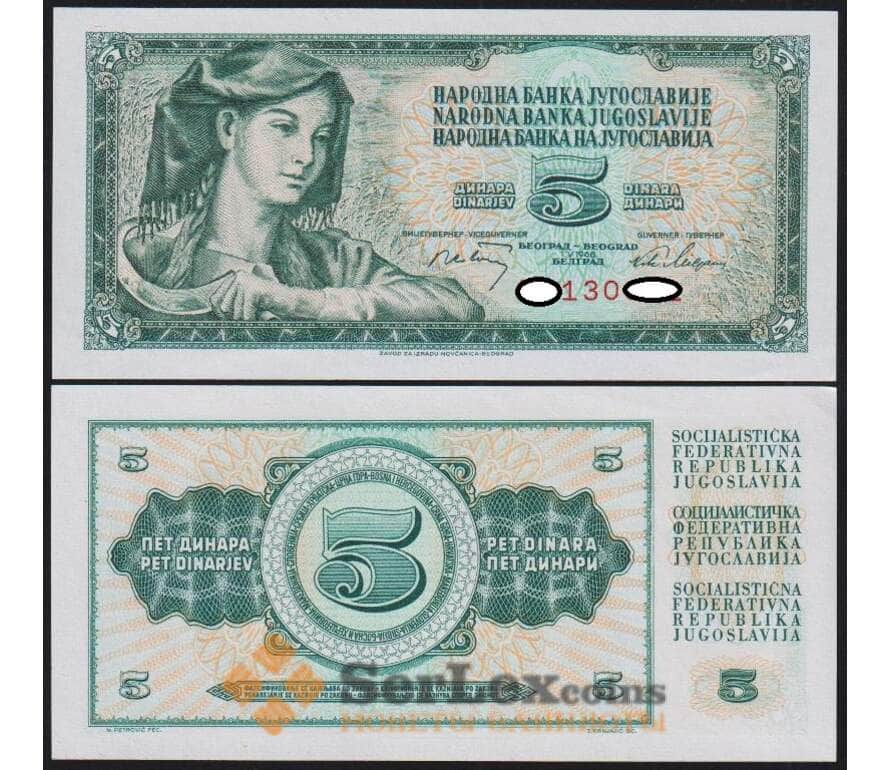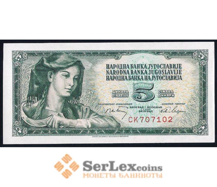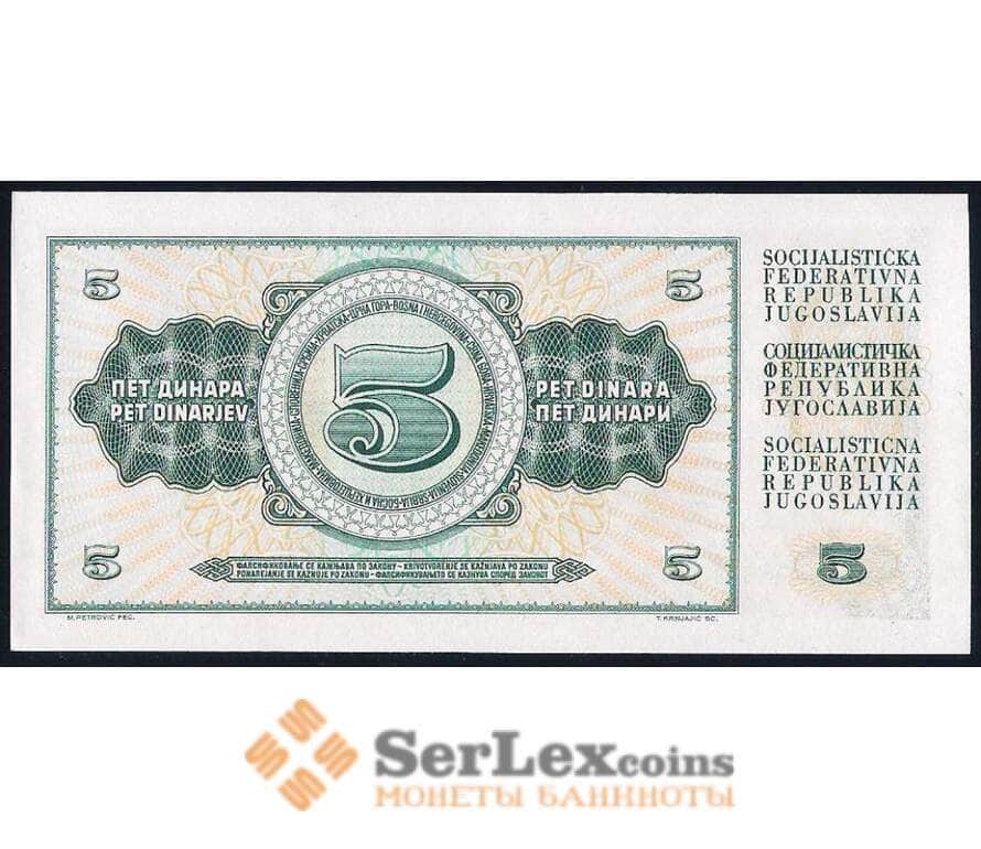 Банкнота Югославия 5 динар 1968 Р81 UNC арт. 39667