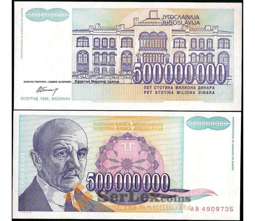 Банкнота Югославия 500000000 динар 1993 Р134 UNC арт. 23036