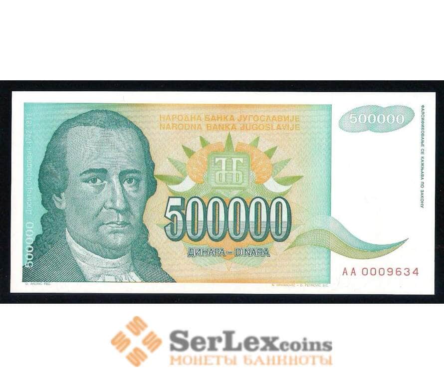 Югославия банкнота 500000 динар 1993 Р131 UNC арт. 42553