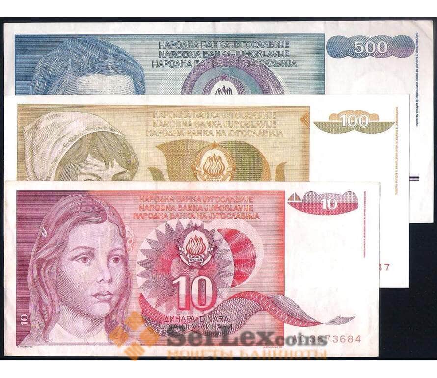 Банкнота Югославия набор банкнот 3 шт. 10 динар -500 динар 1990 XF арт. 39679
