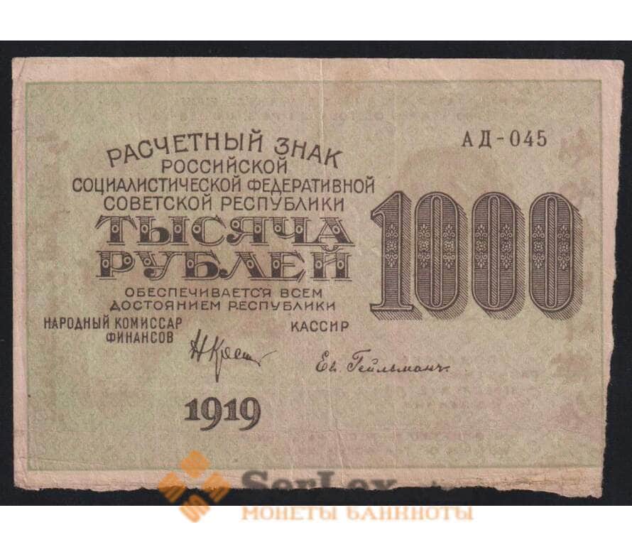 РСФСР 1000 рублей 1919 Р104 VF Расчетный знак арт. 40755