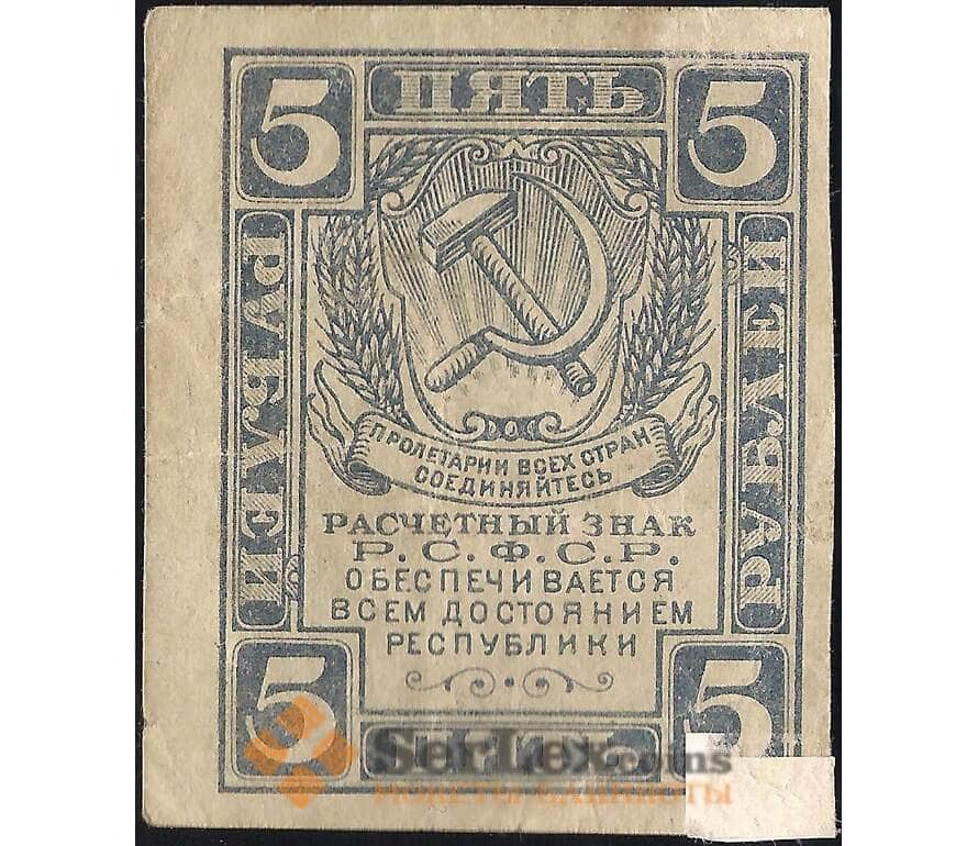 Теги: Банкнота СССР 5 рублей 1920 (1921) Р85 F без в/з арт. 11704,купить дешево.