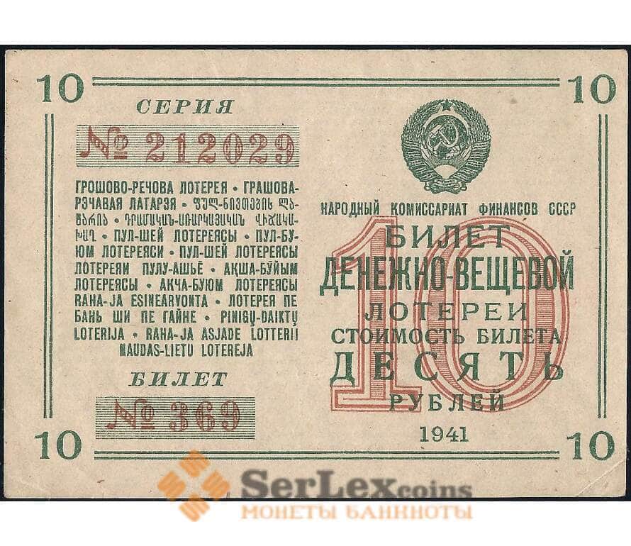 Банкнота Лотерейный билет 10 рублей 1941 10-я лотерея ДВЛ aUNC арт. 31039