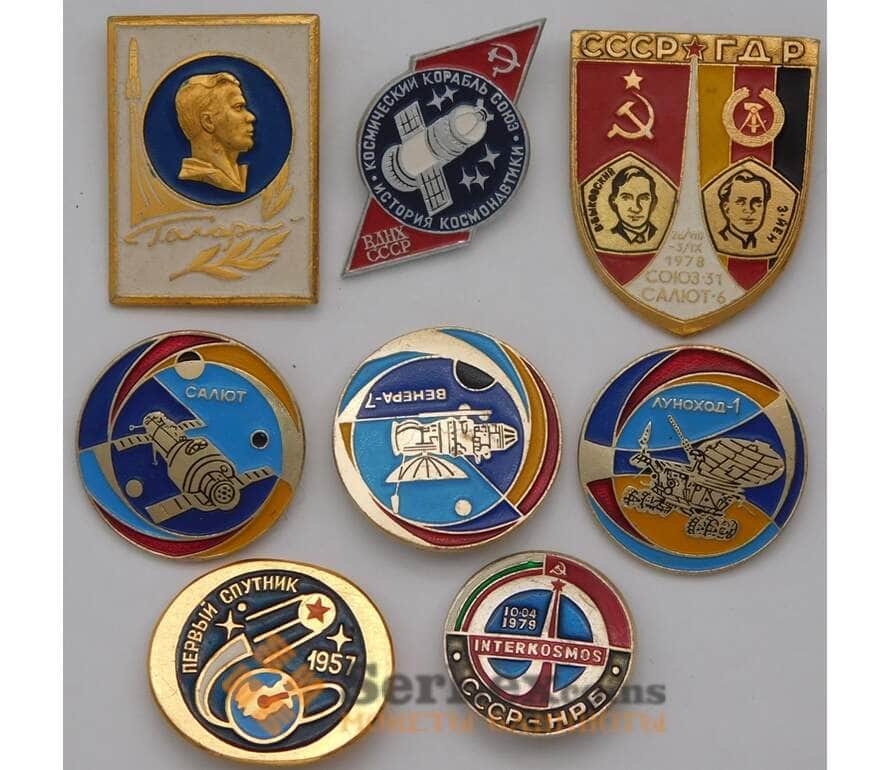 Набор значков 8 шт. Космос, Гагарин, Первый спутник