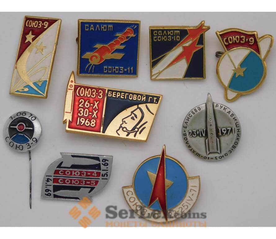 Набор значков 9 шт. Космос Союз Салют
