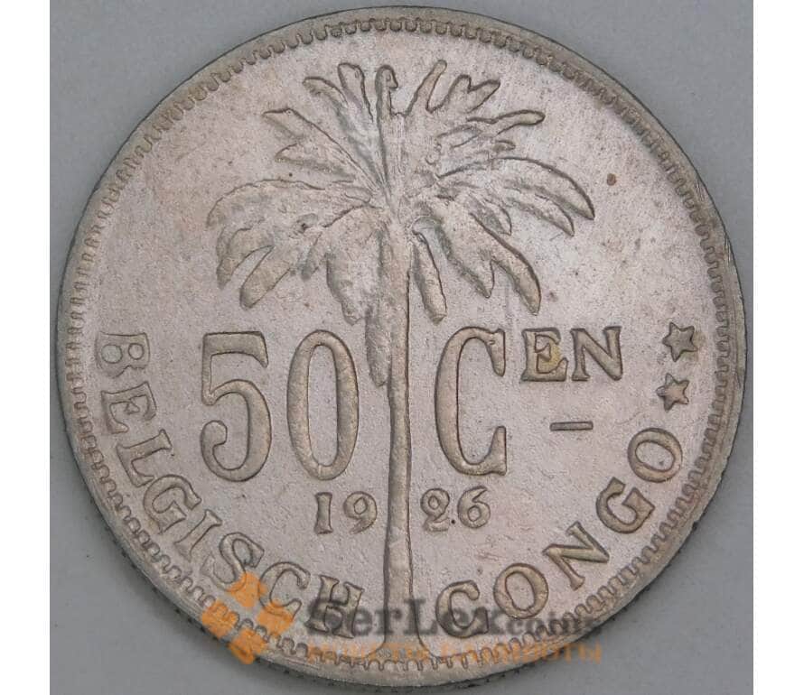 Бельгийское Конго 50 сантимов 1926 КМ23 VF DER BELGEN арт. 55306