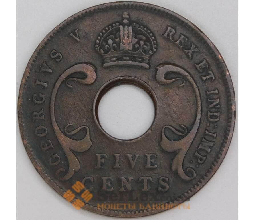 Британская Восточная Африка 5 центов 1925 КМ18 VF арт. 55006
