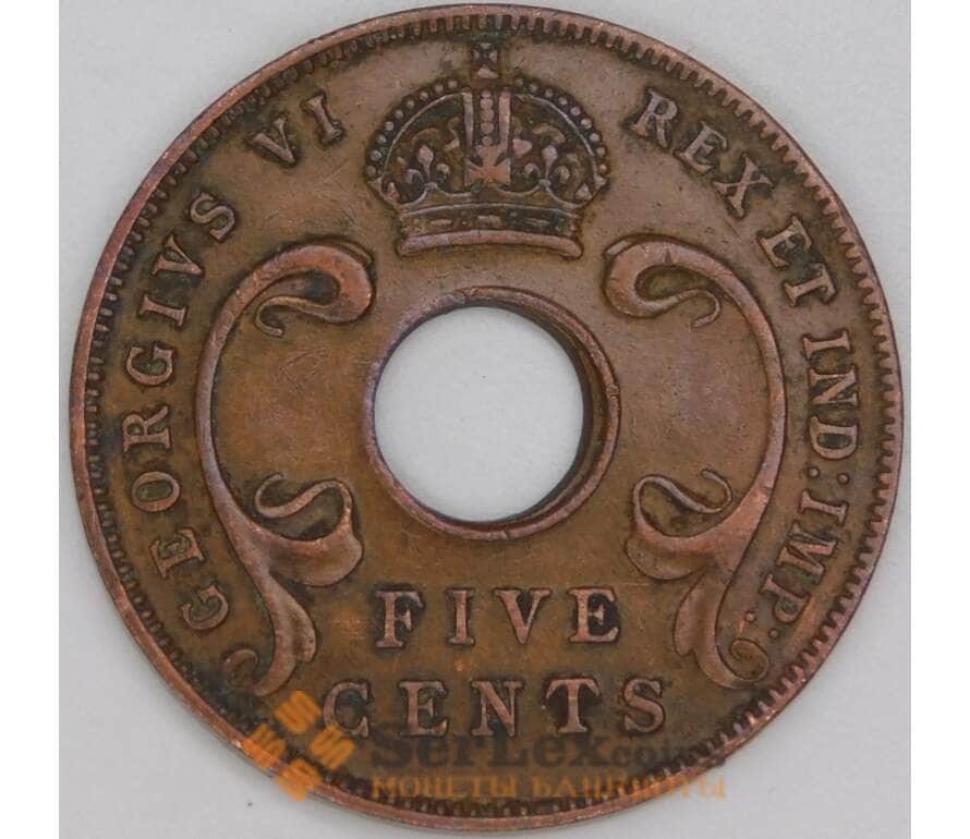 Монета Британская Восточная Африка 5 центов 1942 КМ25.2 XF арт. 5655