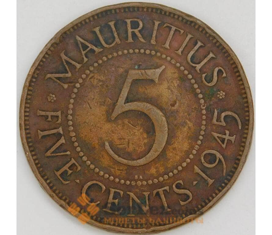 Маврикий 5 центов 1944 КМ20 F арт. 56395