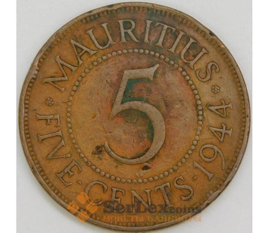 Маврикий 5 центов 1944 КМ20 VG арт. 56392