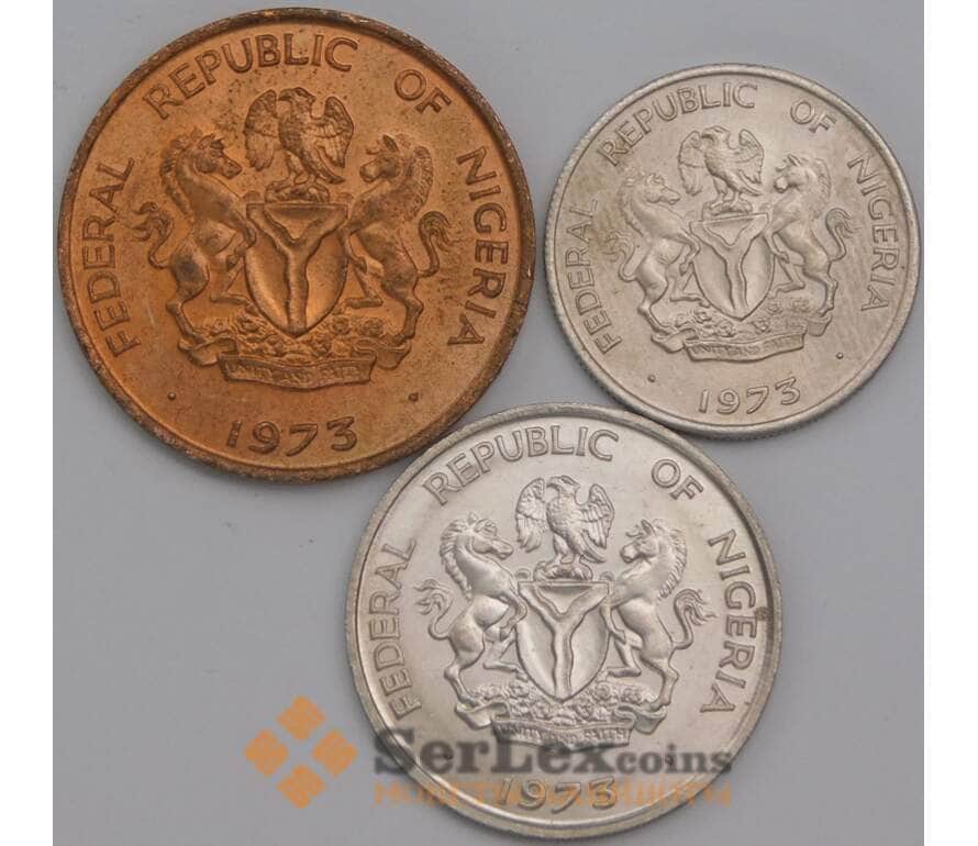Нигерия набор монет 1 5 10 кобо 1973 (3 шт.) КМ8-10 AU-aUNC арт. 43502