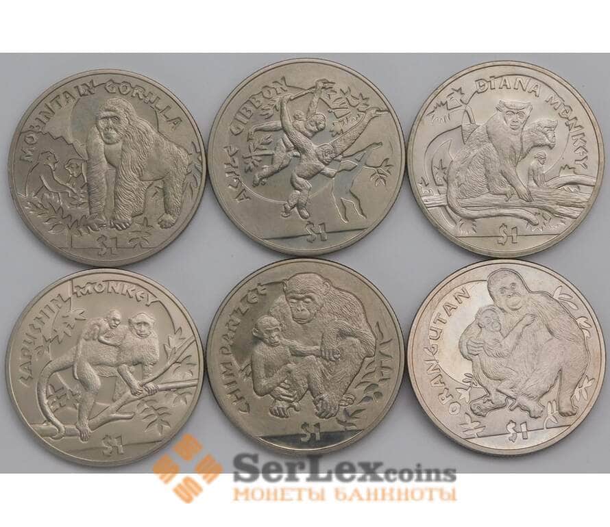 Монета Сьерра-Леоне набор монет 1 доллар 2009-2011 (6 шт) BU Обезьяны арт. 40231