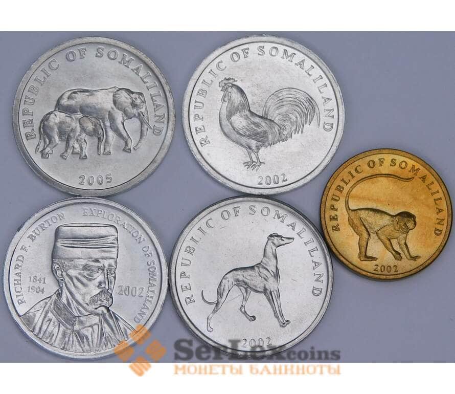 Сомалиленд Набор монет 5шт 5(3шт),10,20 шиллингов 2002 UNC арт. 57140