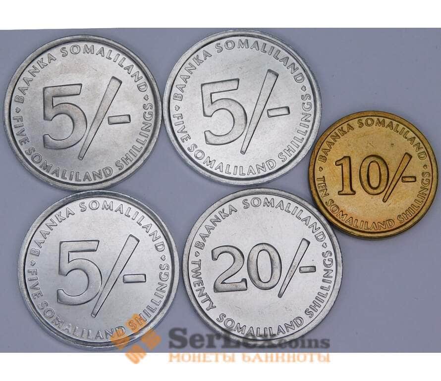 Сомалиленд Набор монет 5, 10, 20 шиллингов (5 шт.) 2002 UNC
