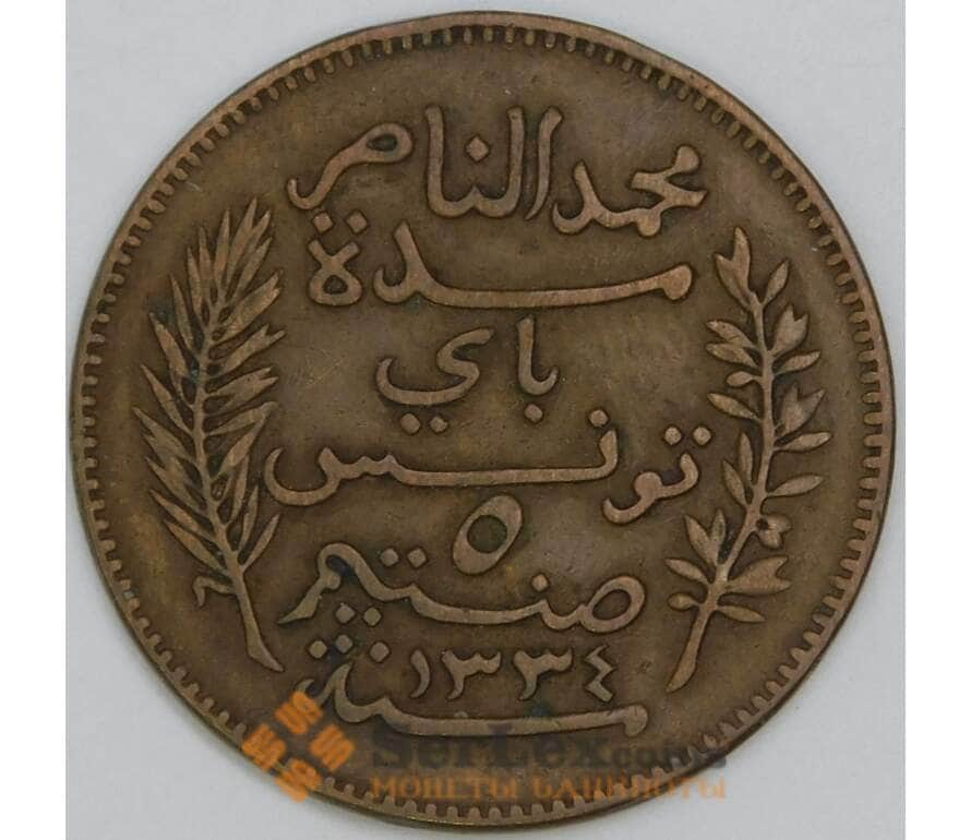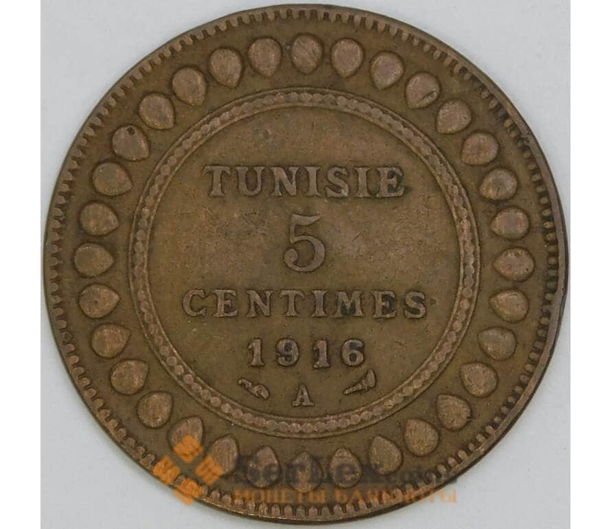 Монета Тунис 5 сантимов 1916 КМ235 VF арт. 39812