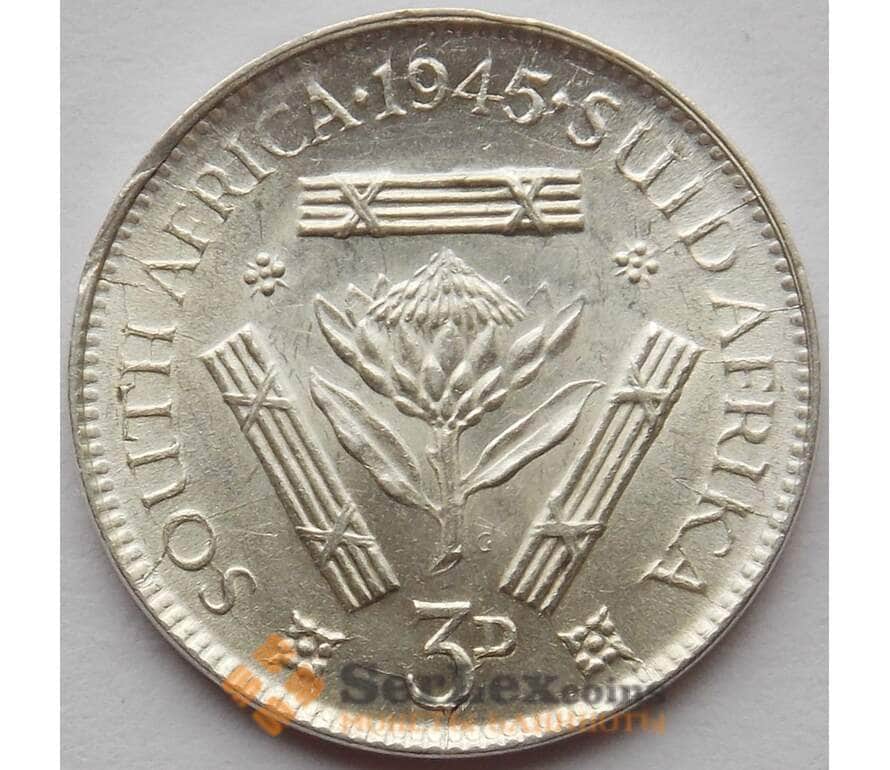 Монета Южная Африка ЮАР 3 пенса 1945 КМ26 aUNC арт. 14152