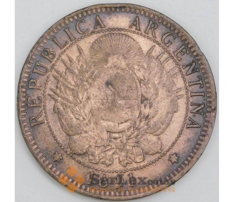 Монета Аргентина 2 сентаво 1891 КМ33 VF арт. 8139