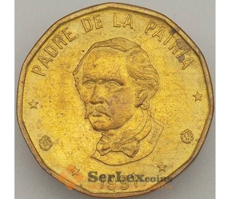Монета Доминиканская республика 1 песо 1991 КМ80.1 aUNC (J05.19) арт. 18627