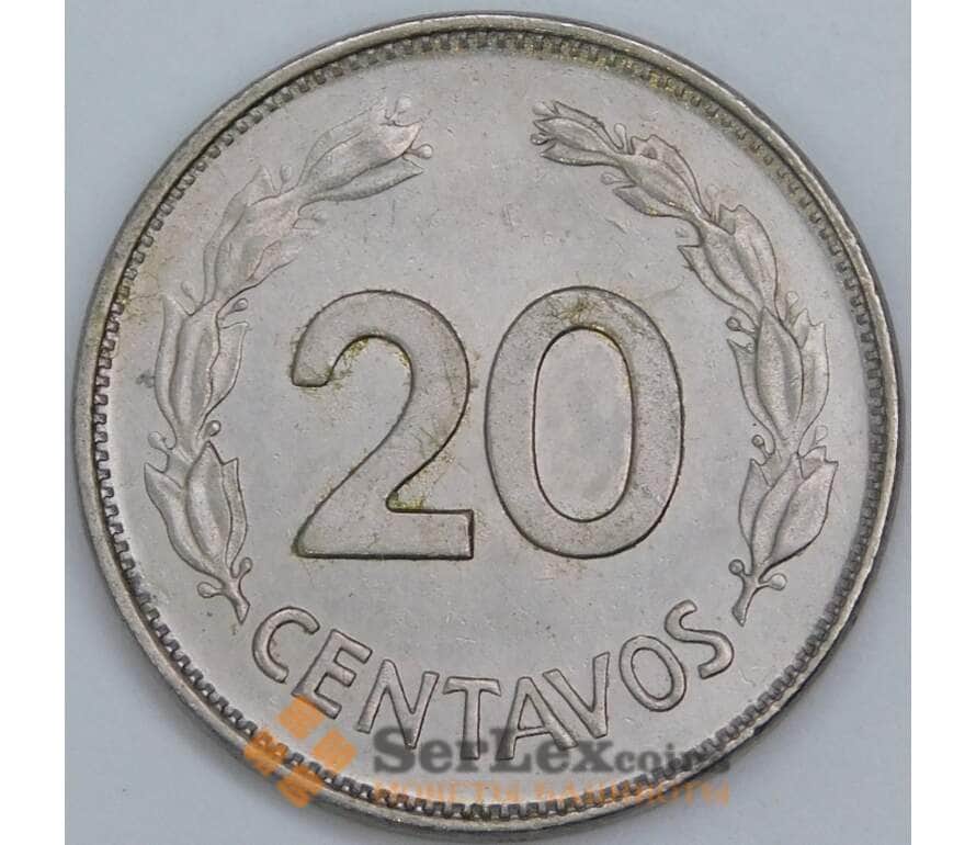 Эквадор 20 сентаво 1966 КМ77.1с AU-aUNC арт. 57492