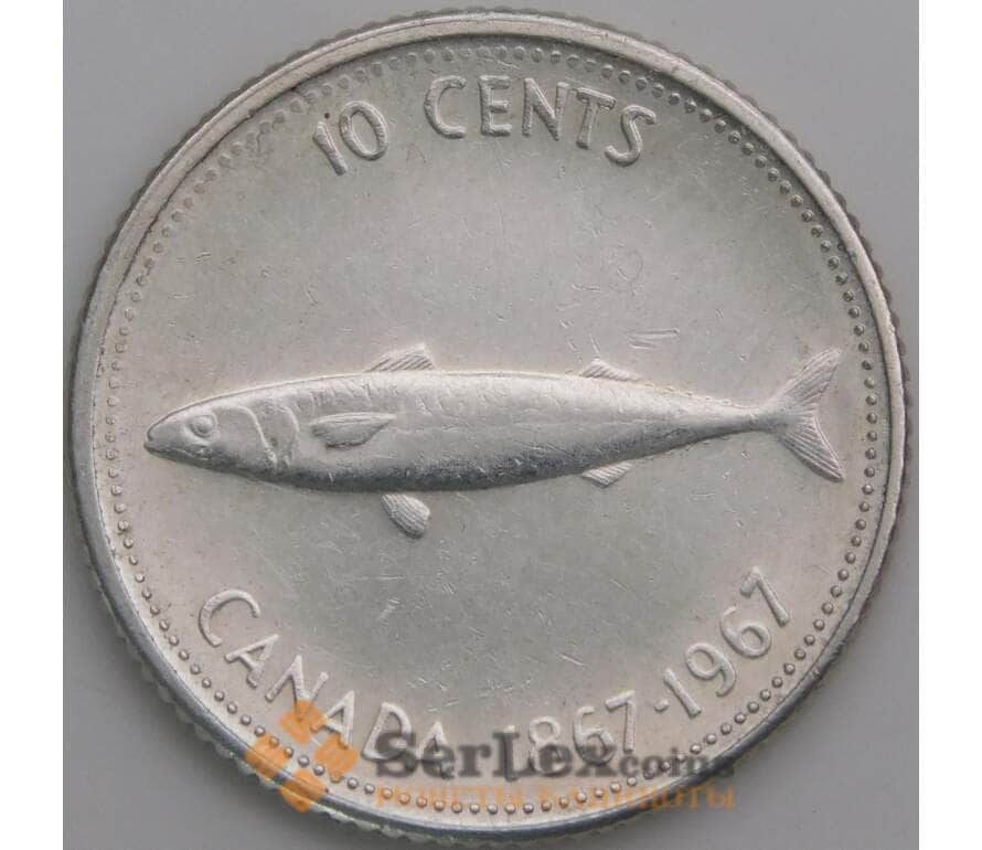 Монета Канада 10 центов 1967 КМ67 AU 100 лет Конфедерации арт. 30746