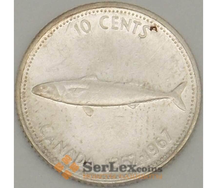 Монета Канада 10 центов 1967 КМ67 XF 100 лет Конфедерации арт. 18156