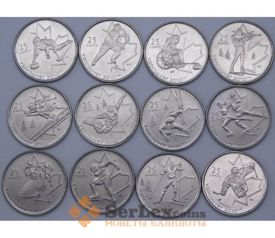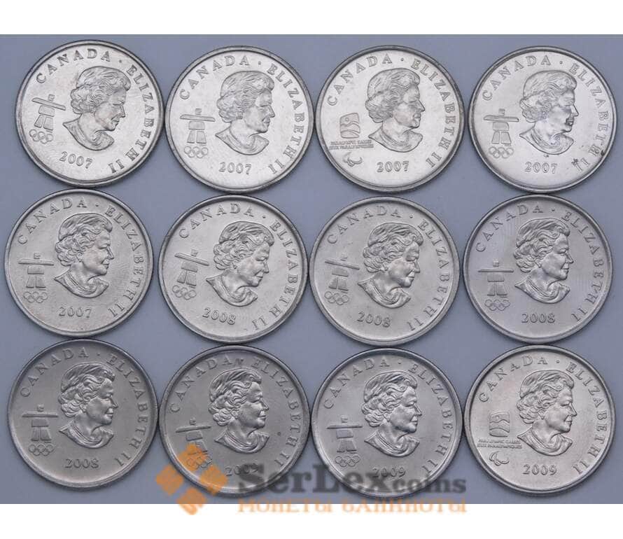 Монета Канада 25 центов * 12 шт 2007, 2008, 2009 Набор Олимпиада Ванкувер XF арт. 23863