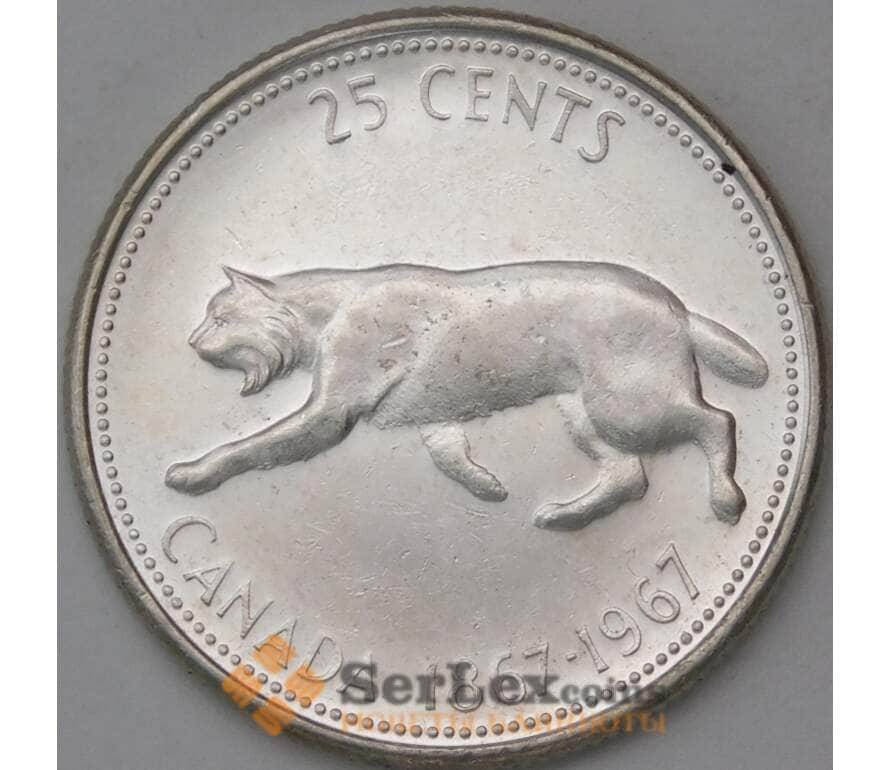 Монета Канада 25 центов 1967 КМ68 AU 100 лет Конфедерации арт. 30685